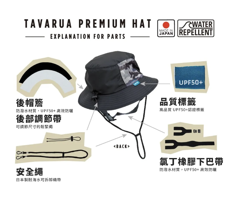 #布料:柔軟、乾爽、防紫外線(UPF50+)、遮陽(5CM帽簷)、防潑水內裡:1mm氯丁橡膠舒適貼合