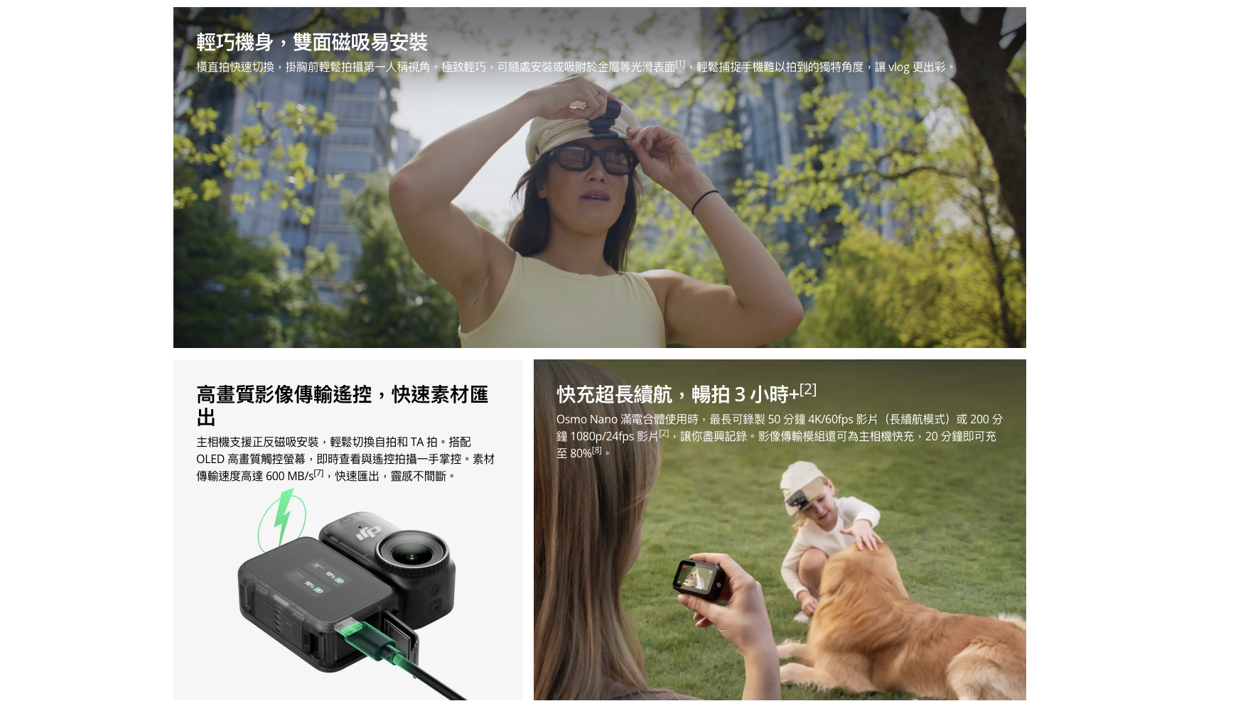 *內含主相機、多功能影像傳輸模組,並配備磁力帽夾、磁力掛繩、雙向磁力球頭組件等配件,助你隨時記錄生活的動人瞬間。