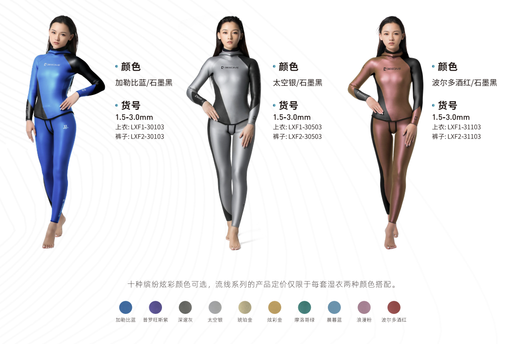 BESTDIVE流線系列自由潛水服精選兩種炫彩顏色,通過平滑、流暢的時尚拼接設計,線條乾淨利落,賦予了我們潛水員無窮的能量。產品更具運動感, 更能體現潛水員的秀長身型。BESTDIVE提供DIY個性服務,潛水員可以自己任意選擇顏色組合,盡顯潛水員的無限想象力和創造力。