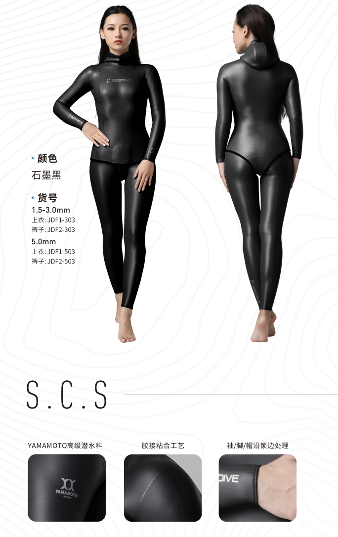 全能型自由潛水服。100%日本YAMAMOTO潛水料,SCS塗層,鈦金屬,提供出色的保暖性輕便性。