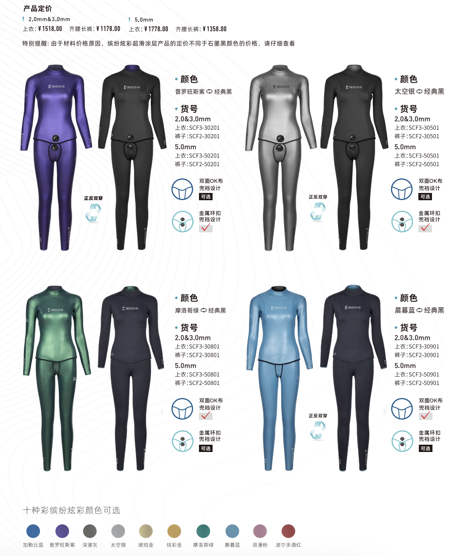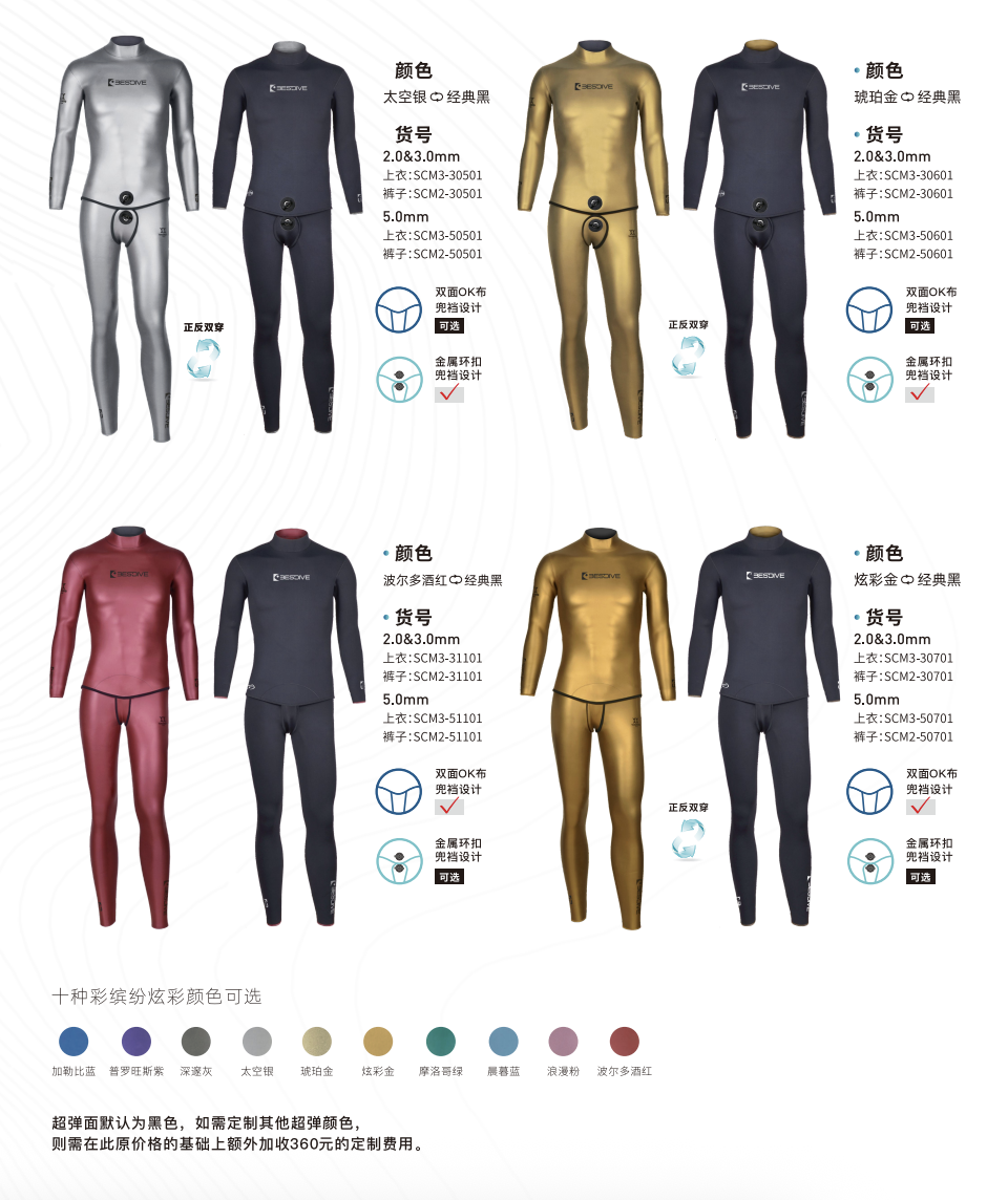 炫彩作為外側,可以提高顏值,減小阻力,便於穿脫。超彈作為外側,可以提高耐磨度,增強保溫性能。